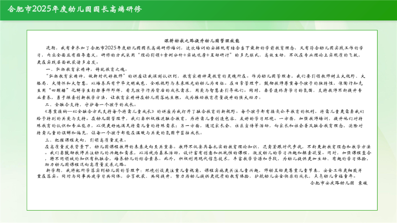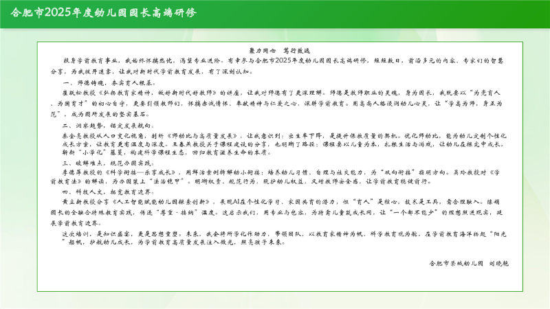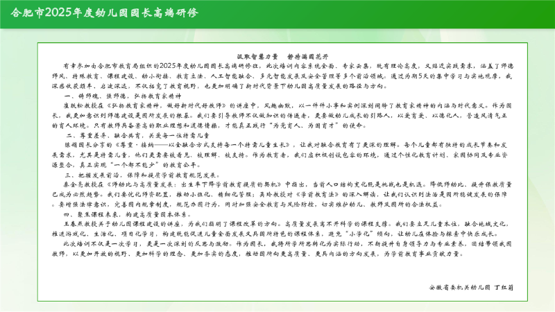 廬陽區(qū)幼兒園園長參加2025年度幼兒園園長高端研修培訓簡報