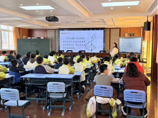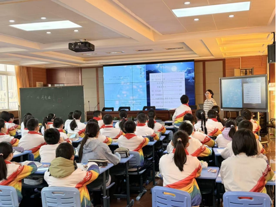 五年級組黃娟老師、史紅燕老師、程俊蓉老師分層推進《古詩詞三首》,從“意象梳理”到“情感對比”再到“詩韻遷移”,落實單元讀寫目標。李晴老師和李妍老師圍繞《鳥的天堂》,從“初讀感知”到“精讀品析”,深化學生對寫景文的理解。王曉芳老師以“尋月線索”串起文本,引導學生抓“孩童的細膩感知”,把散文的詩意與單元“景物描寫”要素自然融合,課堂氛圍溫柔又靈動。程璐璐老師用“圖文對照”解析榕樹描寫,巧思盡顯;谷霞老師借“換詞對比”打磨動態(tài)描寫的精準性,扎實落地單元要素。錢慧敏老師以“學習闖關”串聯(lián)《語文園地》知識點,實用又有趣。趙麗麗老師以仿寫練筆鞏固《語文園地》方法,讓知識落地實踐;李文玉老師的《——即景》習作課,用單元課文做支架,清晰搭建寫作路徑,指導性十足。