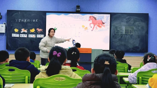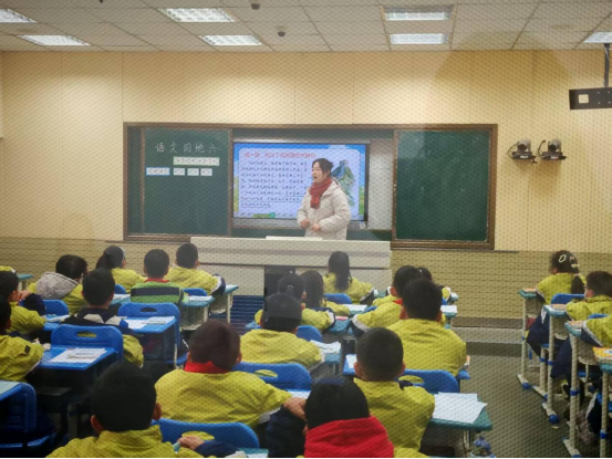 一年級組丁亞君老師、余媛媛老師接力《秋天》,通過“感官體驗”“情境演讀”幫助學生認讀生字、感知課文;張勤老師、林敏老師圍繞《雪地里的小畫家》,設計“仿說句子”活動,鞏固單元表達能力。