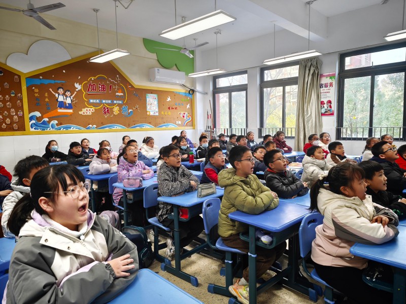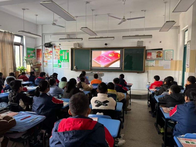 12 月 4 日上午 10 點,全國青少年普法網(wǎng)的直播畫面準時出現(xiàn)在教室屏幕上。同學(xué)們跟隨屏幕中的領(lǐng)讀人齊聲誦讀憲法,聆聽法治故事,參與互動問答。“原來憲法就在我們身邊!”二年級(3)班的小朋友看完直播后興奮地說。這種跨越地域的同步學(xué)習(xí),讓抽象的法律知識變得可感可知。