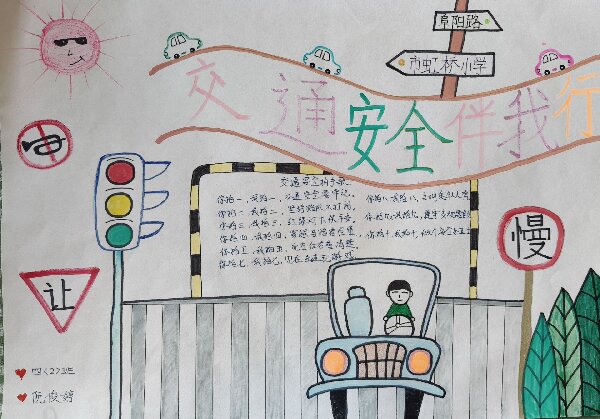 經(jīng)過(guò)縝密策劃與統(tǒng)籌安排,活動(dòng)前期,學(xué)校積極引導(dǎo)全體隊(duì)員分組合作創(chuàng)作交通安全手抄報(bào),將“走得好”的文明規(guī)范與藝術(shù)創(chuàng)作有機(jī)融合,學(xué)生通過(guò)繪制交通標(biāo)志、書(shū)寫(xiě)安全口訣、設(shè)計(jì)主題版面等方式,在協(xié)作過(guò)程中不僅深化了對(duì)安全知識(shí)的理解,更在美化心靈的同時(shí),凝聚了集體力量,充分彰顯了學(xué)?!耙陨鸀楸尽钡挠怂悸罚瑸椤八暮萌阑崩砟钤趯W(xué)生心靈的滋養(yǎng)上邁出了堅(jiān)實(shí)一步。
