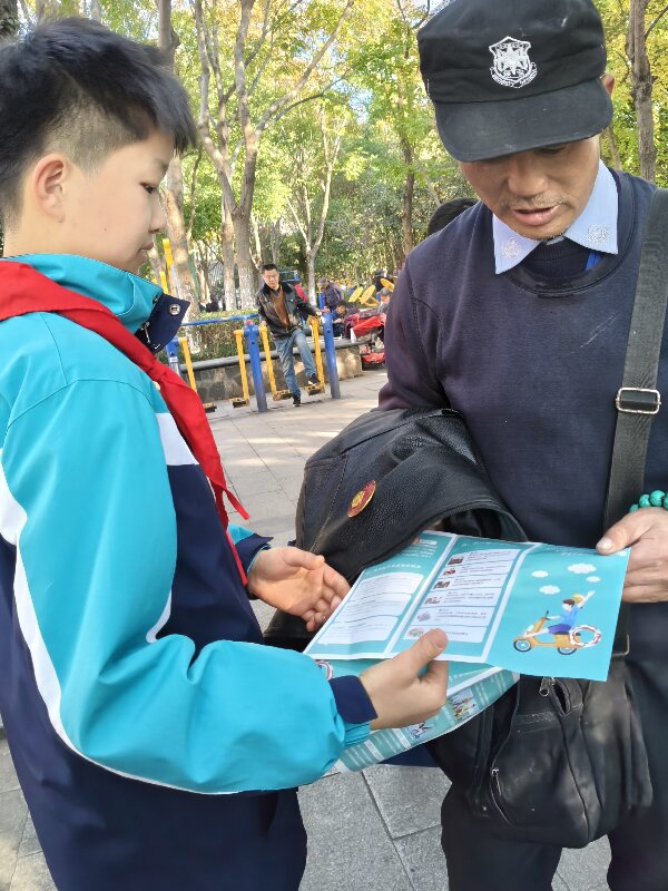 活動(dòng)后期,學(xué)校組織隊(duì)員們走進(jìn)社區(qū)開(kāi)展宣傳實(shí)踐。隊(duì)員們手持安全知識(shí)宣傳單,禮貌地向居民普及日常出行注意事項(xiàng),倡導(dǎo)文明出行習(xí)慣。隊(duì)員文明的言行、認(rèn)真的態(tài)度,不僅傳遞了安全正能量,更以實(shí)際行動(dòng)踐行了學(xué)?!懊阑撵`、美化班級(jí)、美化校園”的育人目標(biāo),展現(xiàn)了虹橋?qū)W子良好的綜合素養(yǎng),也讓校園教育的影響力延伸至社會(huì)層面。