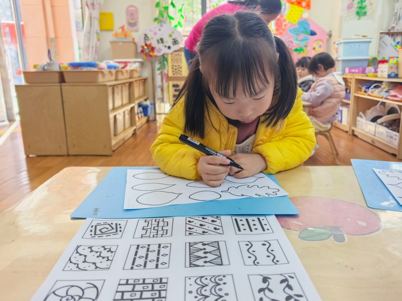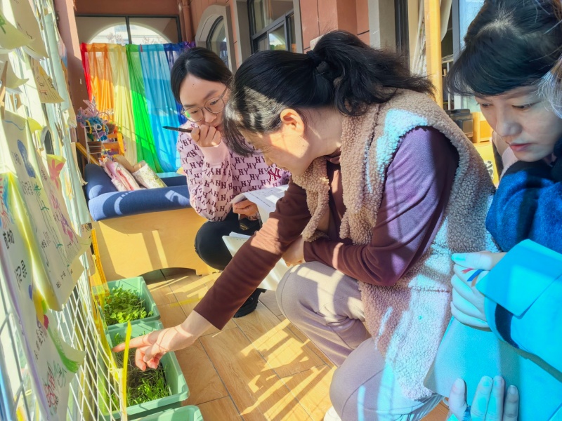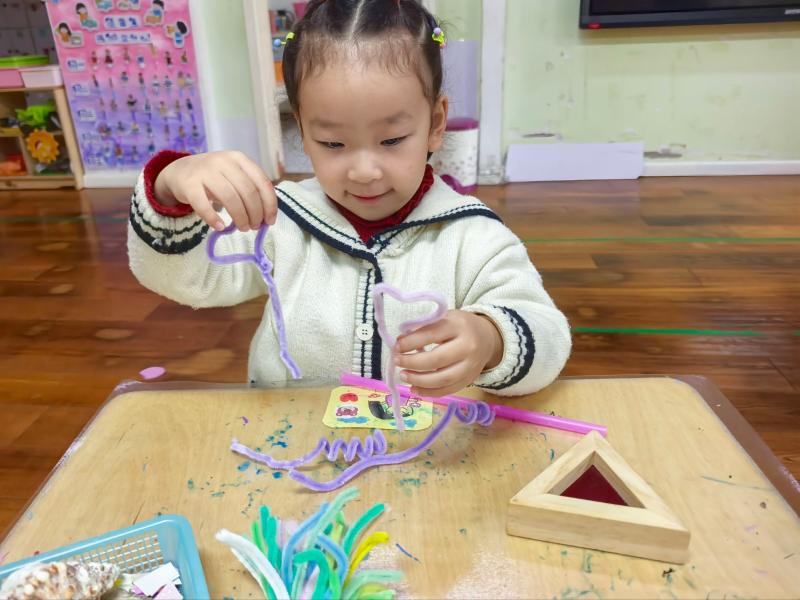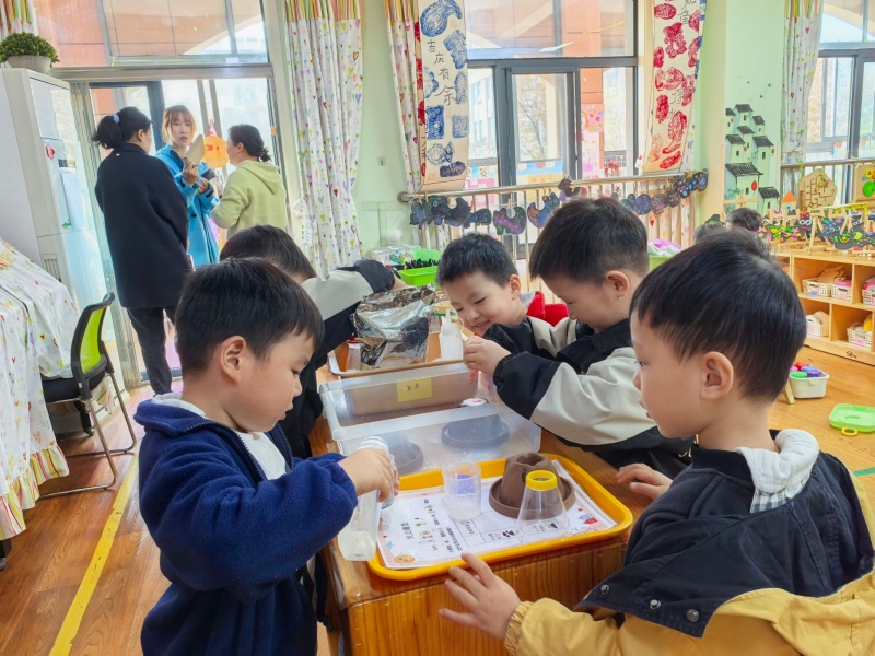 中班以非遺“泥泥狗”“一間花店”為特色,主題墻呈現(xiàn)課程完整脈絡(luò),孩子們在豐富的游戲場景中動(dòng)手實(shí)踐、互動(dòng)交往,每一處區(qū)域都藏著看得見的成長;個(gè)別化活動(dòng)中,孩子們各展其長,美工區(qū)里,大家專注模仿“泥泥狗”的獨(dú)特造型;數(shù)學(xué)區(qū)中,通過操作探索空間方位的奧秘;教室一隅的植物角生機(jī)盎然,蘿卜、香菜、菠菜等幼苗長勢喜人。