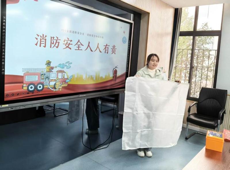 隨后,培訓聚焦常用的消防器材——消防毯與呼吸面罩,展開重點培訓。針對消防毯,詳細演示了“快速取出、抖開覆蓋、隔絕火源”的操作流程,明確其在撲救初期小火、覆蓋身體逃生等場景的使用要點;對于呼吸面罩,通過“打開包裝、佩戴面罩、檢查密封、正常呼吸”的步驟拆解,讓教職工掌握正確佩戴方法,了解其過濾有毒煙霧、延長逃生時間的核心作用,確保大家在緊急情況下能快速上手、規(guī)范使用。