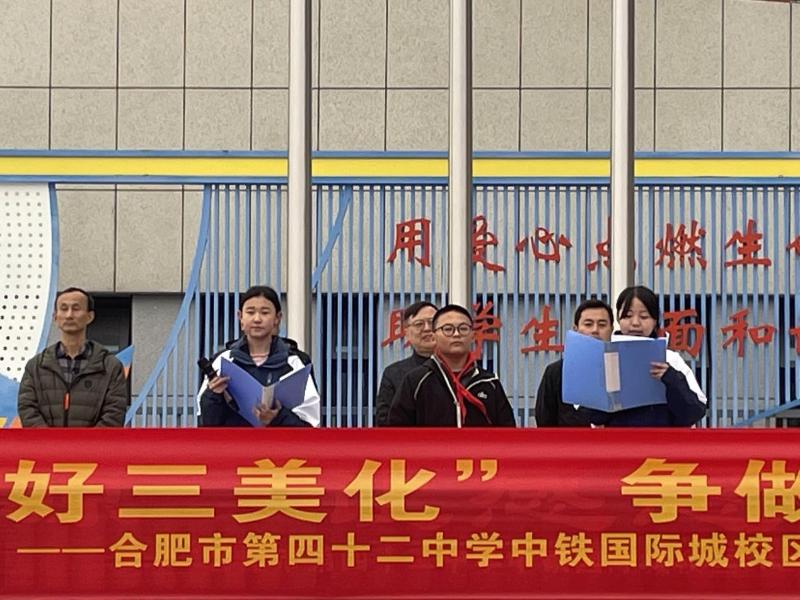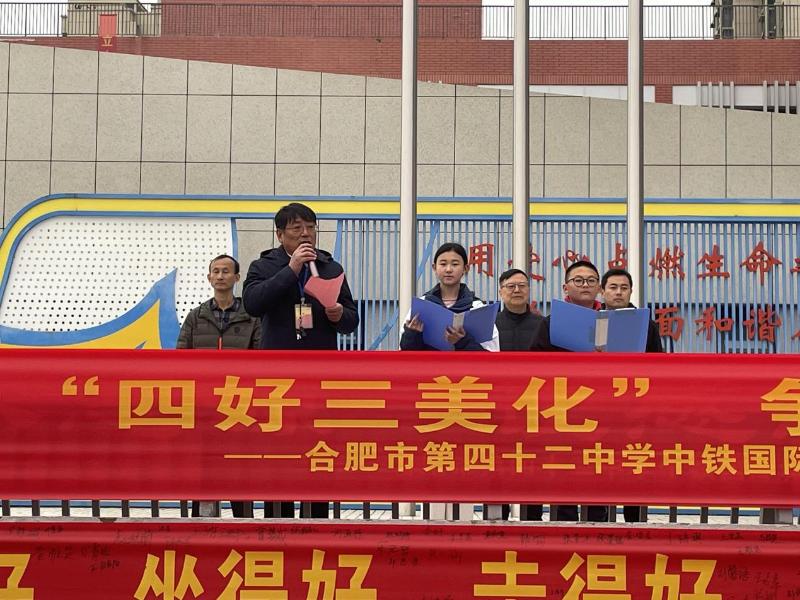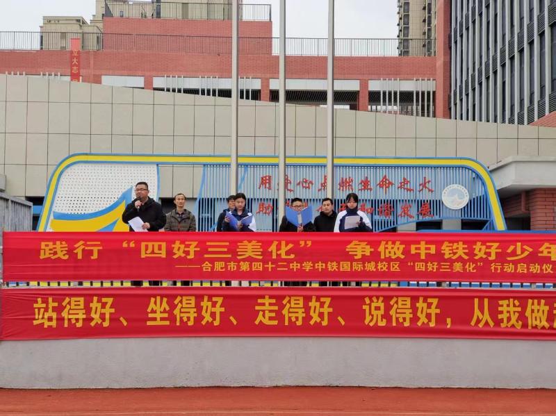 清晨的操場上,五星紅旗在微風(fēng)中獵獵舒展,合肥市第四十二中學(xué)中鐵國際城校區(qū)全體師生身著整齊校服,以飽滿的姿態(tài),迎來“四好三美化”學(xué)生文明素養(yǎng)培育專項行動啟動儀式。