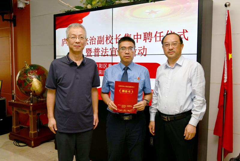 為進(jìn)一步加強(qiáng)校園法治教育,提升青少年法治意識(shí),9月26日,廬陽(yáng)區(qū)教體局舉行檢察院法治副校長(zhǎng)聘任儀式,聘任廬陽(yáng)區(qū)檢察院檢察長(zhǎng)王成余、副檢察長(zhǎng)張卓、黎俊等15名檢察官為中小學(xué)學(xué)校法治副校長(zhǎng)。15位檢察官和15所中小學(xué)校長(zhǎng)共同參加聘任儀式。