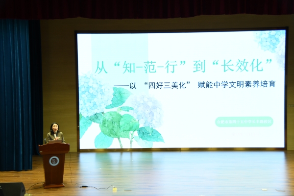 兩所學(xué)校代表分別作了交流分享,合肥市第四十五中學(xué)長豐路校區(qū)聚焦學(xué)生日常行為習(xí)慣培養(yǎng),創(chuàng)新構(gòu)建“知-范-行”三位一體的行為坐標(biāo)系,通過“環(huán)境育人”與“心靈滋養(yǎng)”雙軌并進(jìn),實(shí)現(xiàn)了學(xué)生外在規(guī)范與內(nèi)在成長的同頻共振。合肥市紅星路小學(xué)則系統(tǒng)展示了其初具成效的文明禮儀培育模式,該模式貫通“標(biāo)準(zhǔn)引領(lǐng)、示范指導(dǎo)、課程強(qiáng)化、反饋激勵、競賽鞏固、文化浸潤”六大環(huán)節(jié),形成了一套科學(xué)完善、運(yùn)行閉環(huán)的養(yǎng)成體系,為全區(qū)各校提供了可借鑒、可推廣的實(shí)踐范本。
