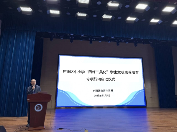 區(qū)教體局黨委書記、局長周宗華在講話中深刻闡述了開展“四好三美化”專項(xiàng)行動的重要意義。他指出,此項(xiàng)行動不僅是落實(shí)立德樹人根本任務(wù)的關(guān)鍵路徑,更是塑造學(xué)生未來品格底色、涵育教師育人能力的長遠(yuǎn)工程。他強(qiáng)調(diào),各校要將此項(xiàng)工作納入常態(tài)化辦學(xué)體系,做到有機(jī)融入、持續(xù)推進(jìn)、久久為功。周宗華進(jìn)一步指出,“YUE動廬陽 歡樂校園”品牌著眼于學(xué)生核心素養(yǎng)的全面培育,而“四好三美化”專項(xiàng)行動則聚焦于學(xué)生個人修養(yǎng)的根基塑造,二者相輔相成、缺一不可。他要求全區(qū)各校準(zhǔn)確把握兩大行動的內(nèi)在聯(lián)系,系統(tǒng)推進(jìn)、協(xié)同發(fā)力,共同構(gòu)筑廬陽學(xué)子“素養(yǎng)與修養(yǎng)并重、底色與特色兼有”的全面發(fā)展新生態(tài)。