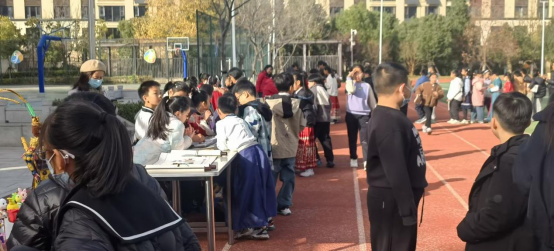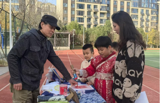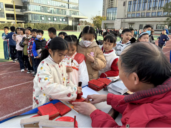 本次活動內(nèi)容豐富,精彩紛呈。其中,技藝互動環(huán)節(jié)是本次活動的亮點。操場上設(shè)置了八大非遺項目體驗區(qū),包括廬陽糖畫(韓正友)、廬州木版水印(王澤龍)、廬州吹糖人(康夫利)、廬州面塑(楊俊生)、廬陽剪紙(葛從云)、廬陽花布(蔡傳龍)、廬州刺繡旗袍制作(方玉梅)以及廬陽字畫(殷漢高)。學生們在傳承人的指導(dǎo)下親手體驗制作過程,零距離感受非遺技藝的精妙,現(xiàn)場氣氛熱烈。